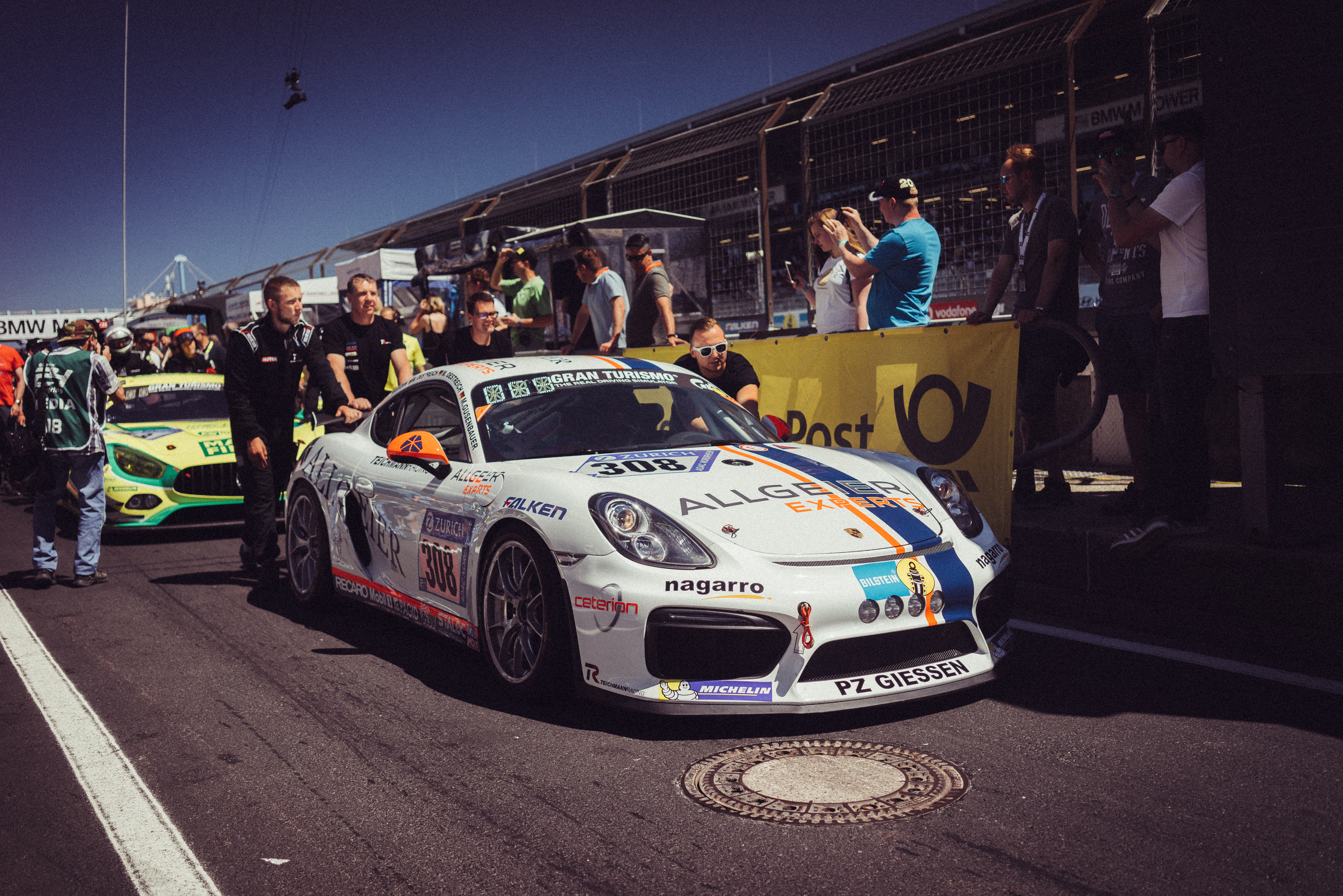 Schon im Qualifying hatte sich der Allgeier Porsche #308 von Gartzen/Gusenbauer/Oestreich/Oestreich von Teichmann Racing gegen #309 Assmann/Assmann/Riemer/Scharmach (Arkenau Motorsport) und die Teichmann Teamkollegen im H&R Porsche #307 Bohr/Große/“Maximilian“/Schramm durchgesetzt. Am Start behauptete der Allgeier Porsche #308 von Gartzen/Gusenbauer/Oestreich/Oestreich die Führung in seiner Klasse, während der zweite Porsche mit Nagarro-Schriftzug #307 Bohr/Grosse/Maximilian/Schramm sich um eine Position verbesserte und Teichmann Racing somit die Doppelführung bescherte.