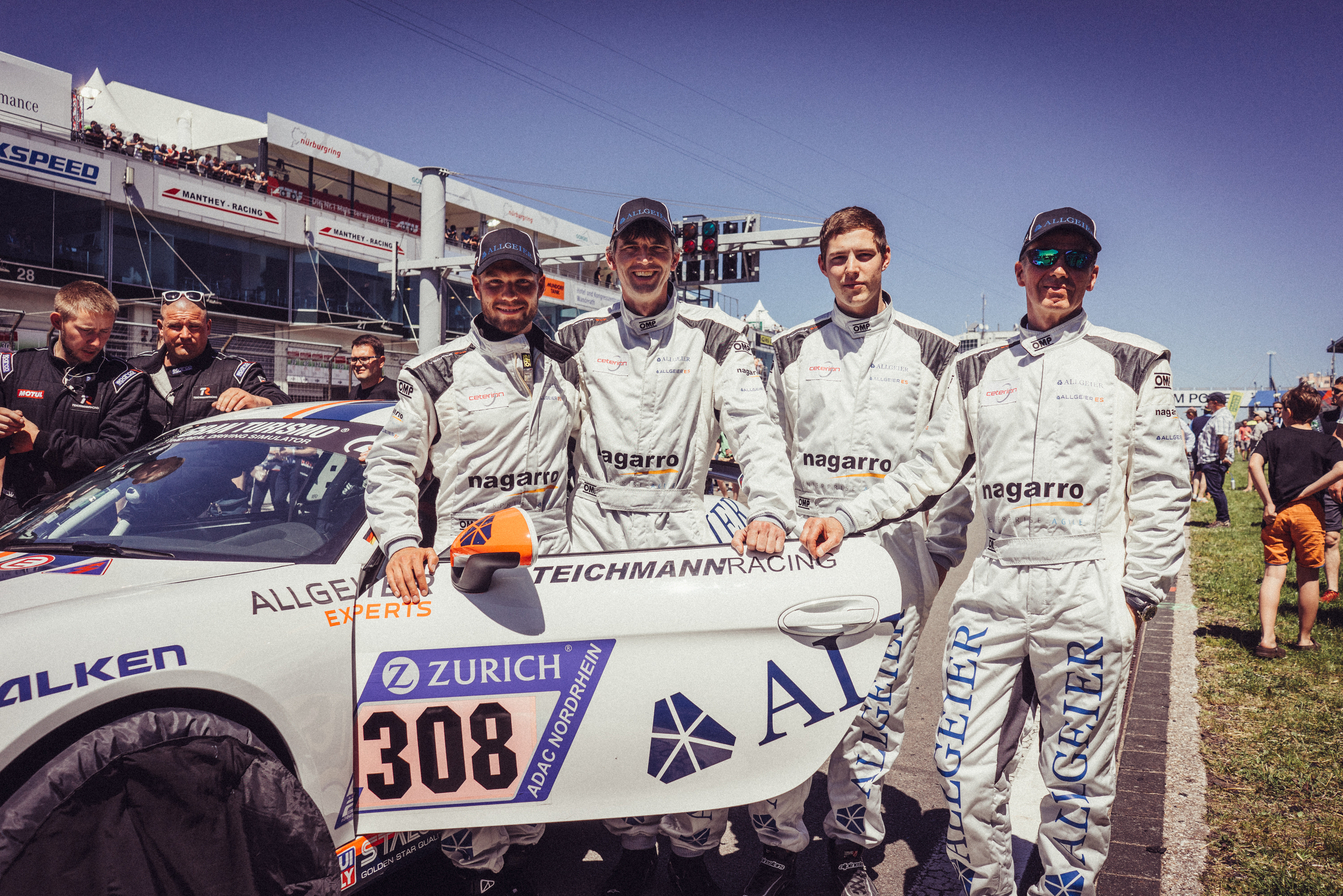 Allgeier Porsche holt auf der legendären Nürburgring-Nordschleife die Pole Position und wird am Ende Zweiter, H&R Porsche im Nagarro-Design siegt in der Porsche Cayman GT4 Trophy beim 24 Stunden-Rennen in der Eifel. Allgeier gratuliert dem ganzen Team und den Fahrern von Teichmann Racing zu ihrer außergewöhnlichen Performance und zu einem herausragenden Erfolg.